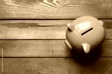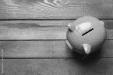 piggy bank on a green wooden table