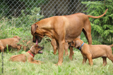 Rhodesian ridgeback with puppies in the garden