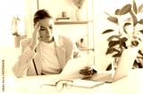 Frustrated caucasian business woman, looking stressed because of results of work, holding her head while reading a document at her desk, feeling confused, upset and disappointment
