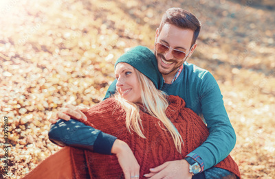 Romantic couple in autumn park. Love and romance