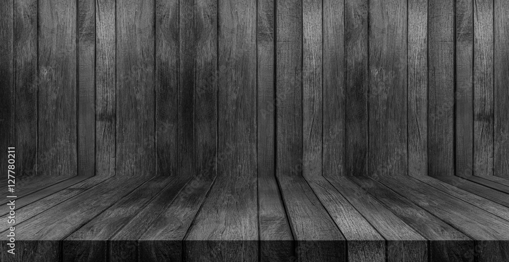 Wood texture background. black wood wall and floor