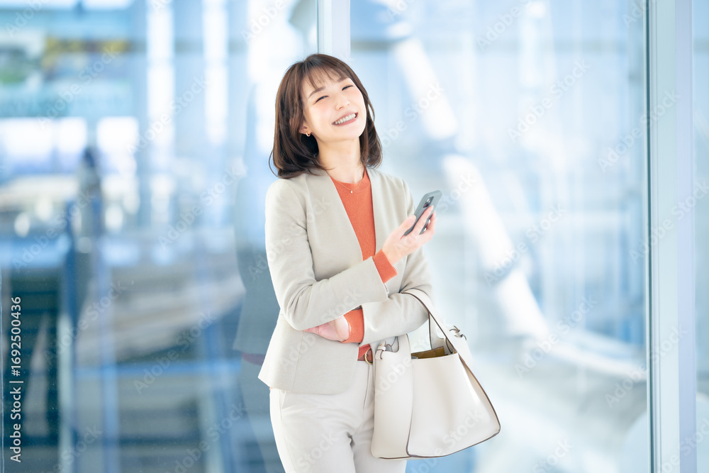 A White screen computer on the wooden table with decorative items, Workspace beside glass window.