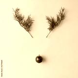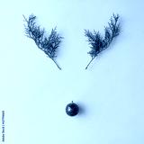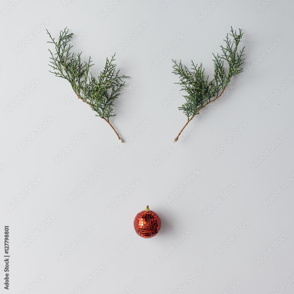 Reindeer face made of Christmas decoration and pine branches. Mi