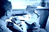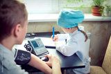 Young female doctor or nurse taking patients