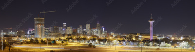 Denver skyline at night panoramic picture, Colorado, USA.