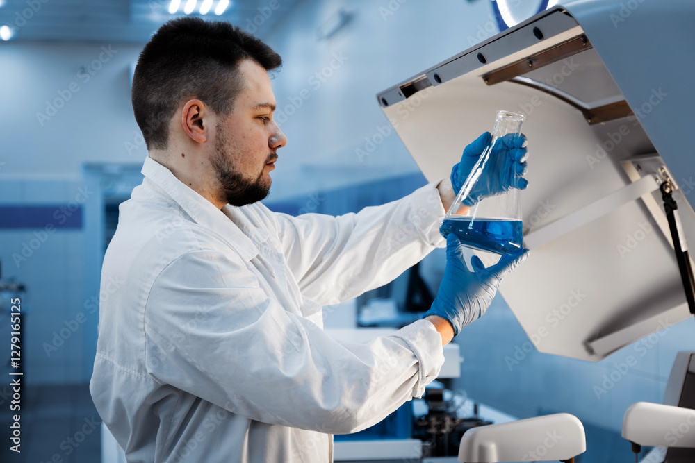 A scientist uses lab equipment for an experiment, working with test tubes and samples. Concept scientific research and experiments using cutting-edge technology in the laboratory.