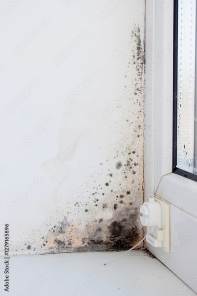 A significant amount of mold is visible in the corner of the window,indicating poor ventilation