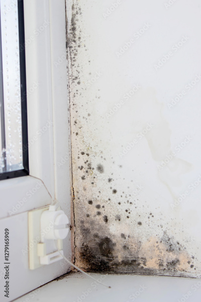 A significant amount of mold is visible in the corner of the window,indicating poor ventilation