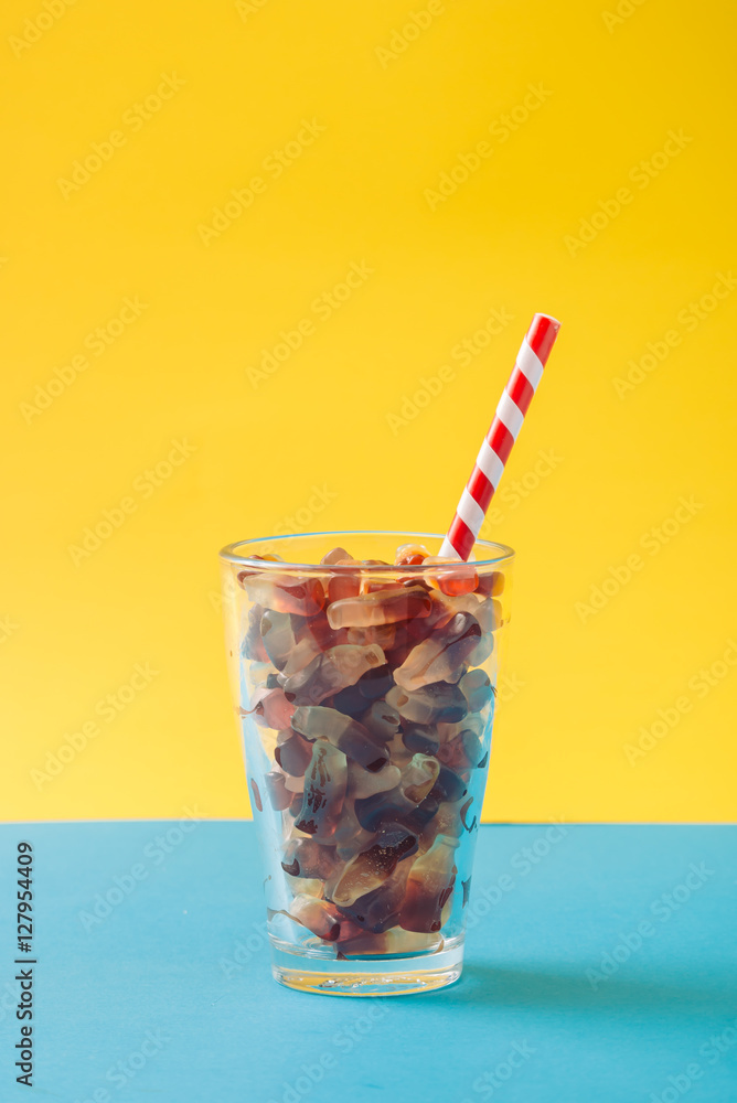 Glass full of gummy candies.