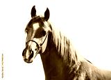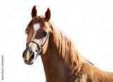 portrait of sorrel young arabian colt at white background