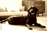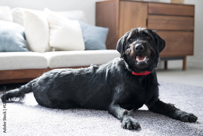 リビングでお座りするリビングフリーワンチャン(犬)のイメージ カメラ目線かわいい