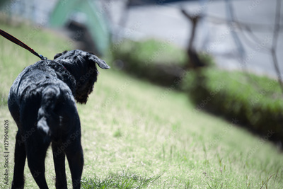 楽しい大型犬のお散歩 人懐っこい犬の後ろ姿の顔無し