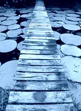 Wood bridge over Amazon pond whit "Victoria regia" lilys