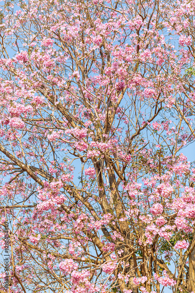 Tree with pink flowers,The romantic tunnel of pink flower trees