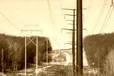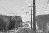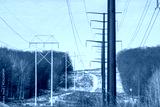 A high-voltage power line corridor cresting a hill in the Upper Peninsula of Michigan during the winter