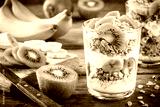 Healthy breakfast: yogurt parfait with granola, banana and kiwi