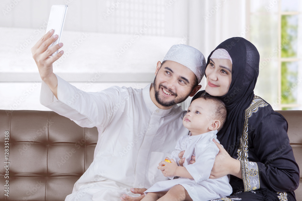 Arabian parents and son take selfie photo