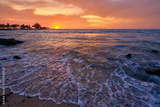 Beautiful Hawaii Sunset with Vibrant Orange Sky, Calm Ocean Waves, and Silhouette Coastline: Serene Tropical Island Nature Landscape Scenery