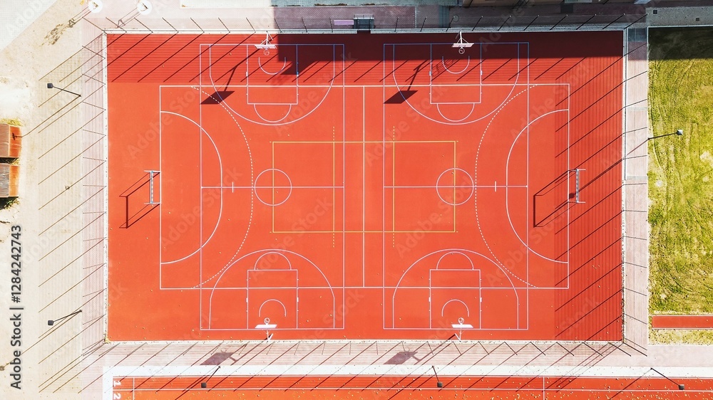 Aerial view of sports courts and running track