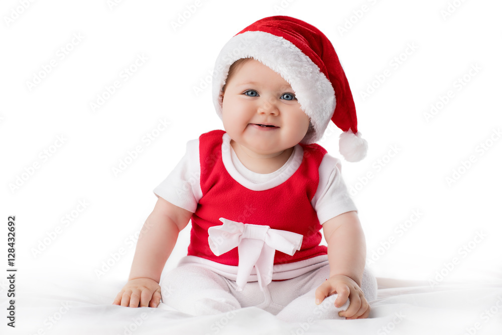 Christmas toddler in Santa hat
