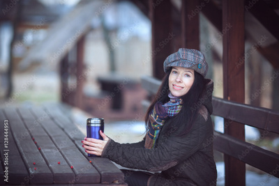 Beautiful young modern woman smiling happy and cheerful in trenc