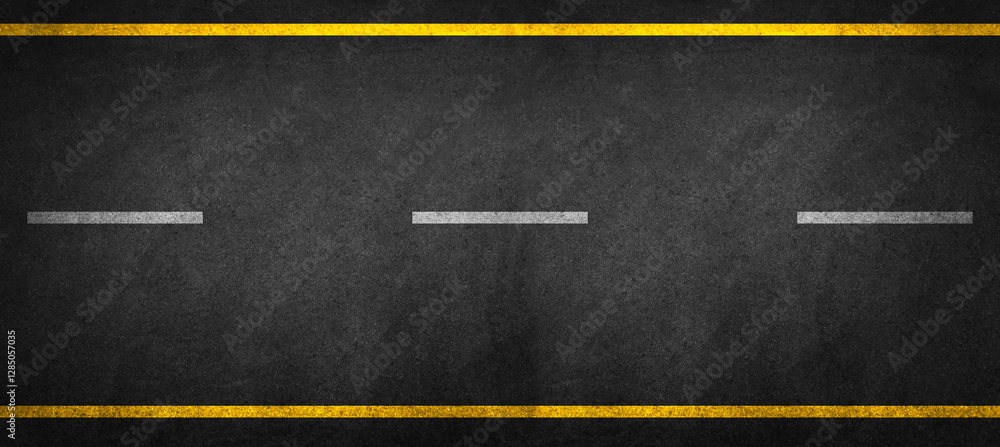 White And Yellow Stripes On Asphalt Road Texture.