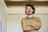 A man in a factory with his arms crossed in his work clothes looking at the camera.