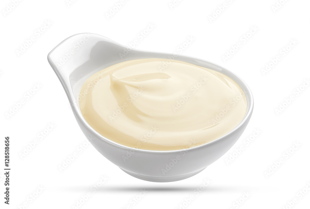 Mayonnaise sauce in bowl isolated on white background
