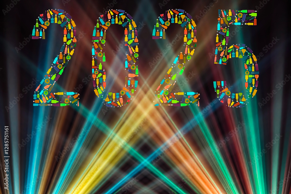 Lasershow with Multiple Laser Beams in Fog, The concepts of performance arts, Colored light beams from reflector through the foggy night sky