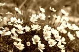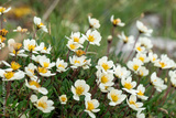Soft focus on creamy white Mountain Avens flowers, Dryas Octopetala, in full bloom. Beautiful flora of The Burren in Co. Clare, Ireland.