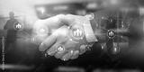HR. Human resources management concept on blurred abstract background. Mixed Media