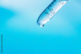 Close-up science experiments,Close up view macro shot of gel with different sized bubbles comes out from lab dropper into petri dish on blue background