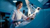 A scientist uses lab equipment for an experiment, working with test tubes and samples. Concept scientific research and experiments using cutting-edge technology in the laboratory.