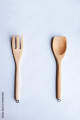 Wooden Spoon Fork on Natural background Healthy organic clean food concept