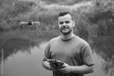 Drone operator controlling UAV with remote.