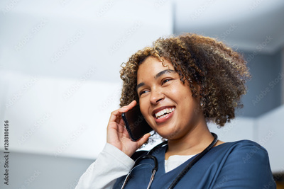 Smiling Medical Professional Speaking on Smartphone in Office Setting
