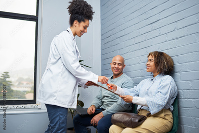 Doctor Interacting With Patients in a Modern Medical Office Setting