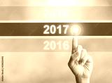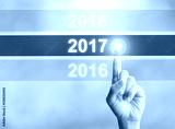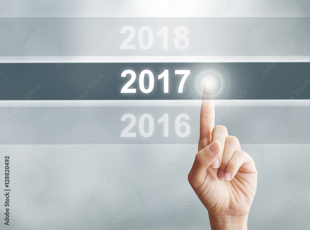 Woman hand pointing new year 2017. Business new year concept.