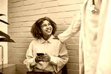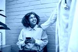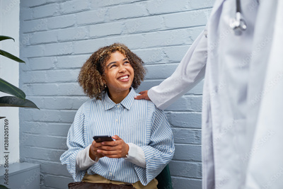 Smiling Patient Engaged with Doctor in a Bright Medical Clinic Setting