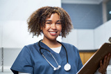 Friendly Female Nurse Smiling in Medical Uniform with Stethoscope in Healthcare Setting