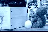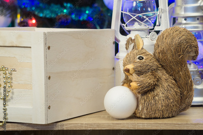 Christmas decorated interior with Christmas Tree, lamps and gift
