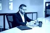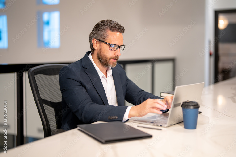 Business offices place. Businessman working with laptop in office. Business man director using laptop. Millennial manager at office workplace. Office workers business people at office.