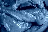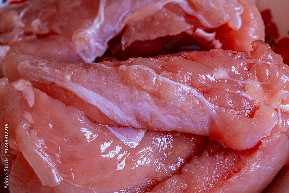 Close-up of pieces of uncooked fresh raw chicken fillet