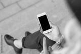 Woman sitting outside and using smartphone
