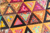Patchwork quilt. Part of patchwork quilt as background. Handmade. Colorful blanket.