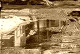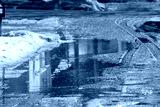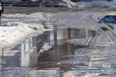 Puddles in the alley during the wintertime thaw