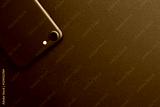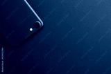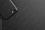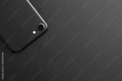 Black phone showing backside view on black background