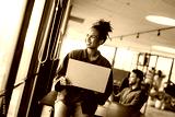 Multicultural professional businesspeople working together on research plan in boardroom.