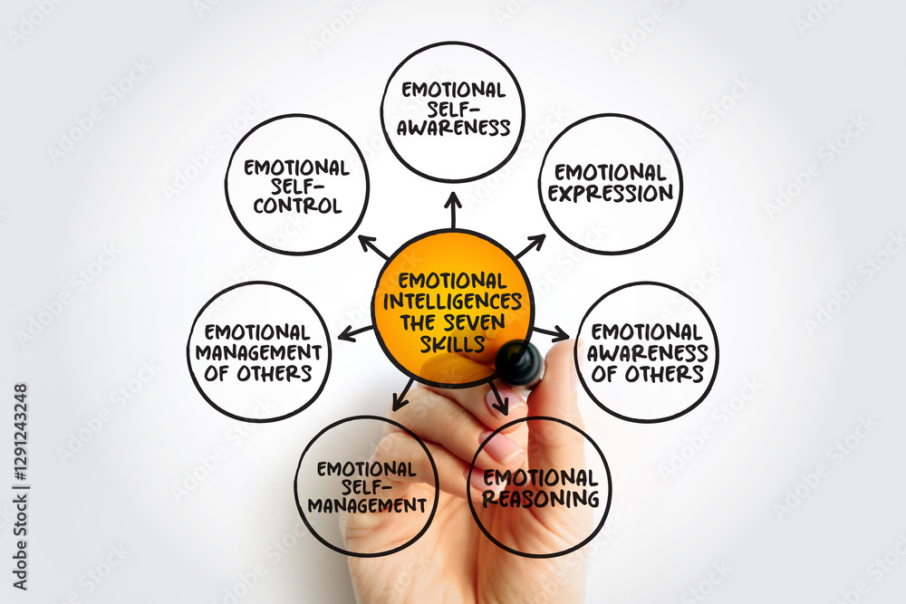 Emotional Intelligence The Seven Skills, mind map concept for presentations and reports