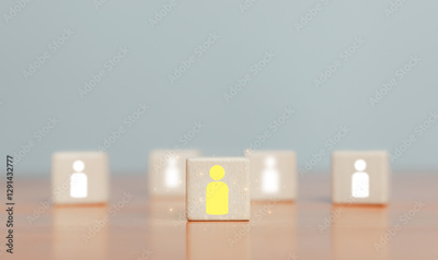 Wooden blocks showing the concept of human resources, employees, employment, management, training, HR, technology, business leadership concept, consulting, customer concept, digital services.